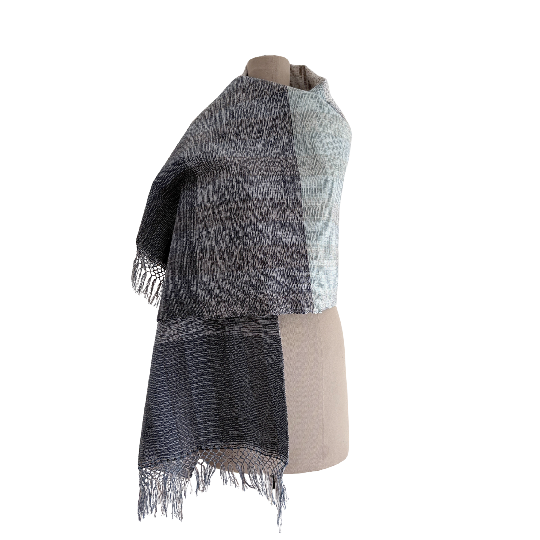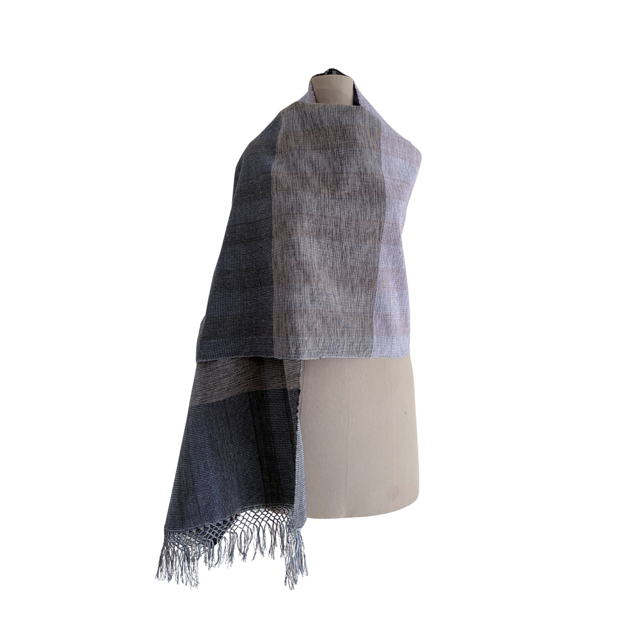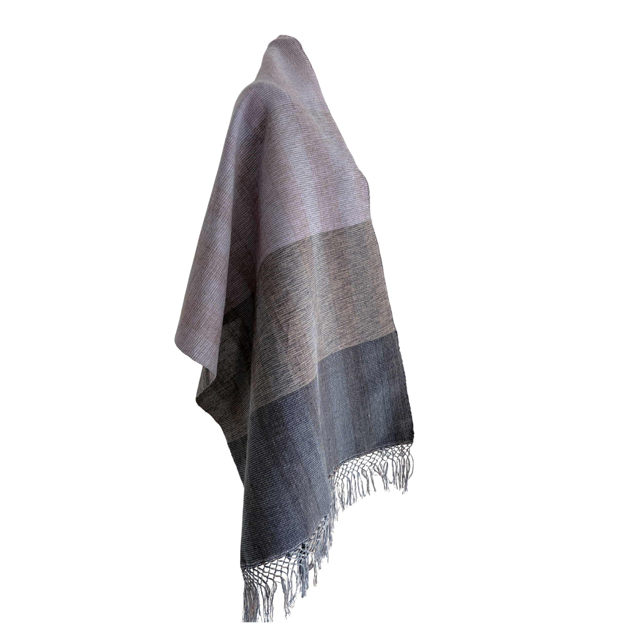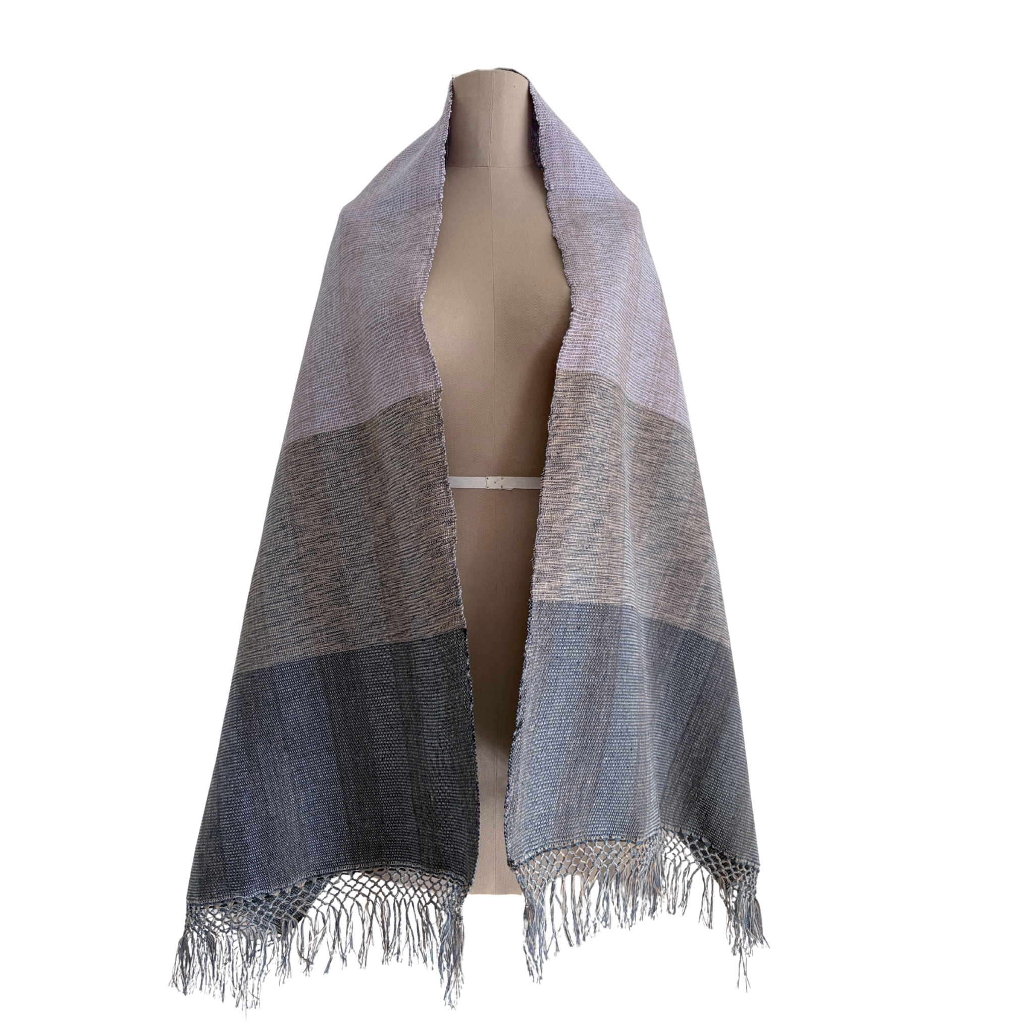 Rapacejo Artesanal: Terminaciones de flecos anudados a mano que rinden homenaje a la técnica tradicional del rebozo mexicano, añadiendo un detalle de distinción en los bordes.