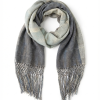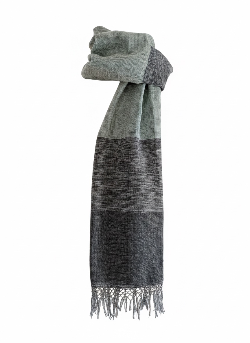 Viajero Sofisticado: Dóblalo estilo bufanda sobre una gabardina o abrigo de lana. Su paleta de grises neutros es perfecta para combinar con cualquier guardarropa de invierno.